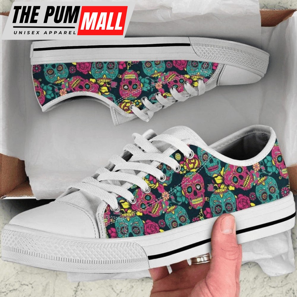 Day Of Dead Colorful Skull Floral Low Top Shoes PN206175Sb