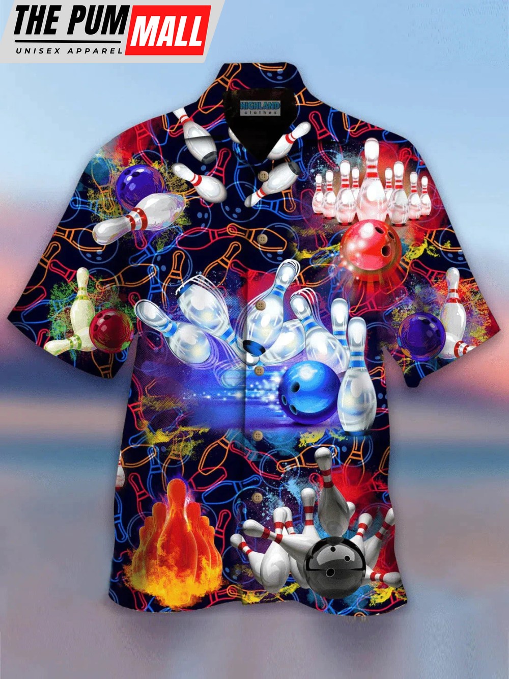 3D The Fire Bowling Black Unisex Hawaiian Shirt Bowling shirt Gift for Bowling lovers