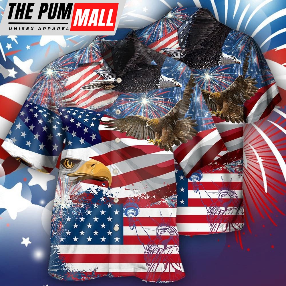 4th Of July Hawaiian Shirt, America 4Th Of July America Eagle Freedom Hawaiian Shirt, Hawaiian Fourth Of July Shirt