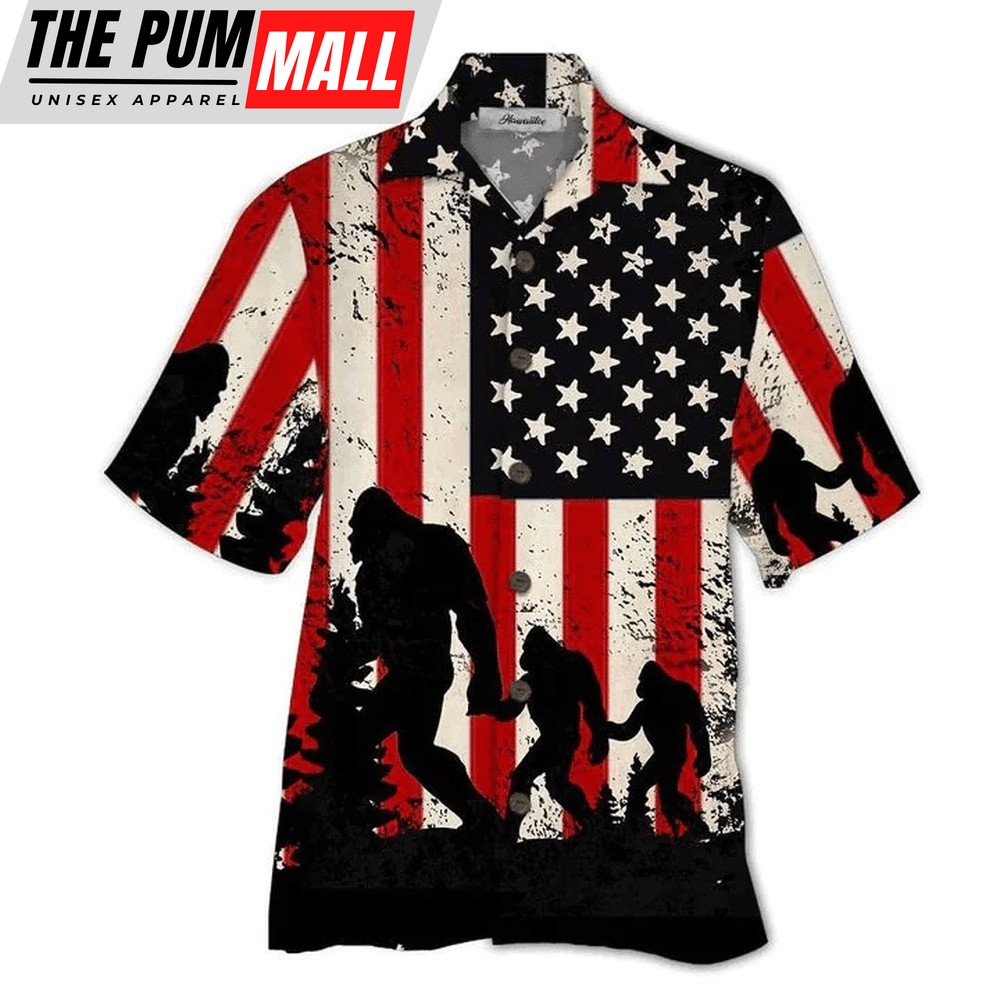 4th Of July Hawaiian Shirt, Bigfoot American Flag 4Th Of July Hawaiian Shirt, Bigfoot Aloha Shirt, Hawaiian Fourth Of July Shirt