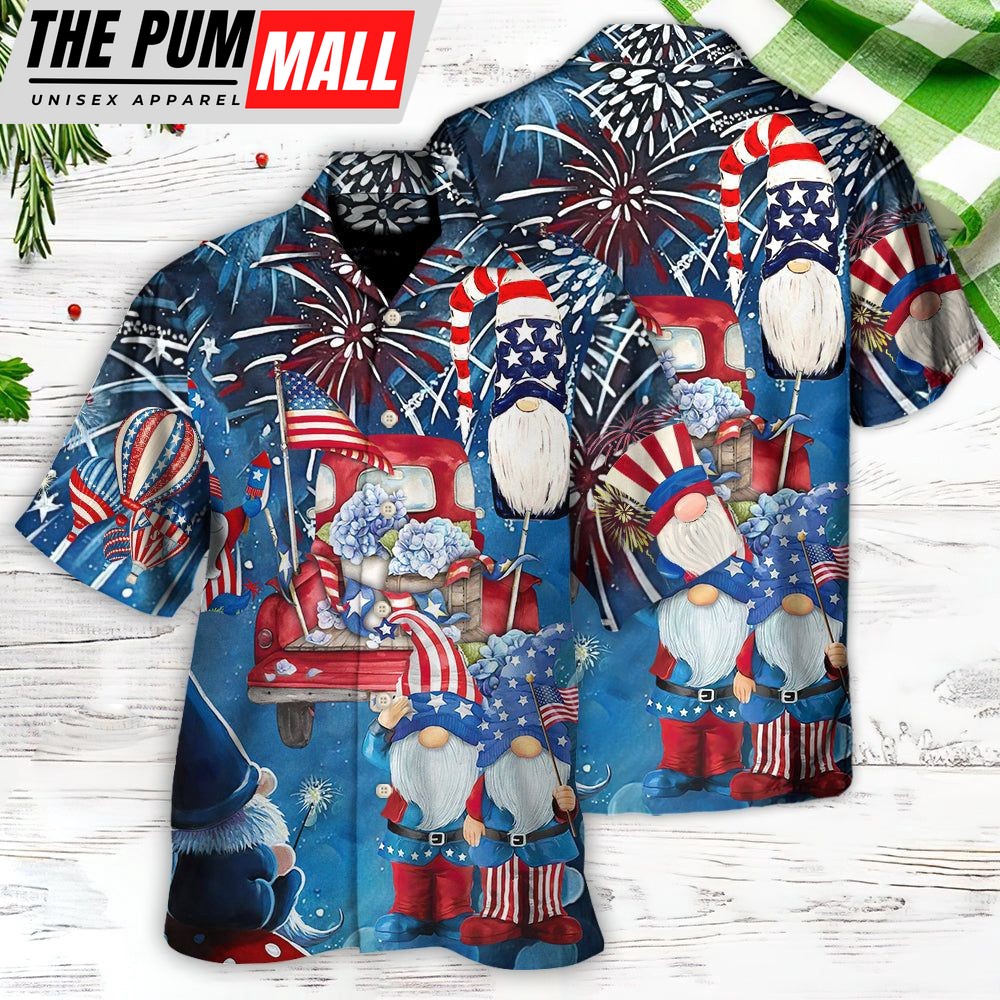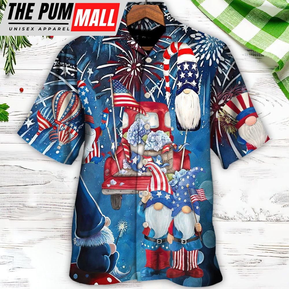 4th Of July Hawaiian Shirt, Independence Day Cute Three Trio Gnome 4Th Of July Hawaiian Shirt, Hawaiian Fourth Of July Shirt