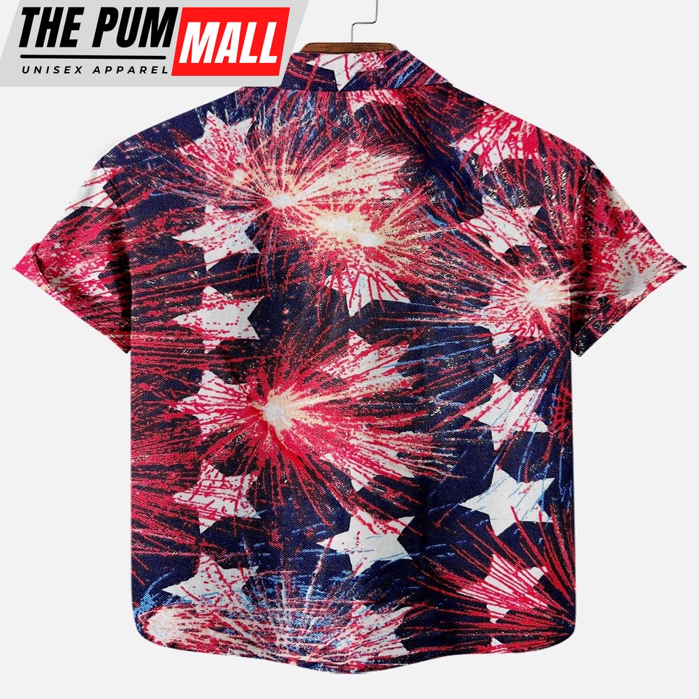 4th Of July Hawaiian Shirt, Independence Day Star Firework Pattern Men’s Short Sleeve Pocket Shirt, Hawaiian Fourth Of July Shirt
