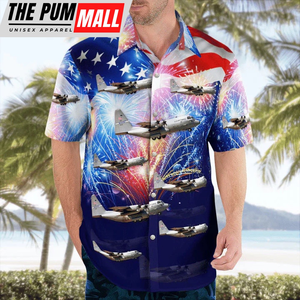 4th Of July Hawaiian Shirt, Kentucky Air National Guard 165Th Airlift Squadron Lockheed C-130H Hercules Hawaiian Shirt, Hawaiian Fourth Of July Shirt