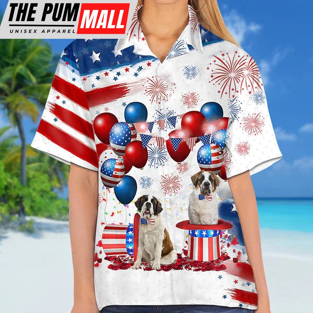 4th Of July Hawaiian Shirt, Saint Bernard Independence Day Hawaiian Shirt Hawaiian Shirt, Hawaiian Fourth Of July Shirt