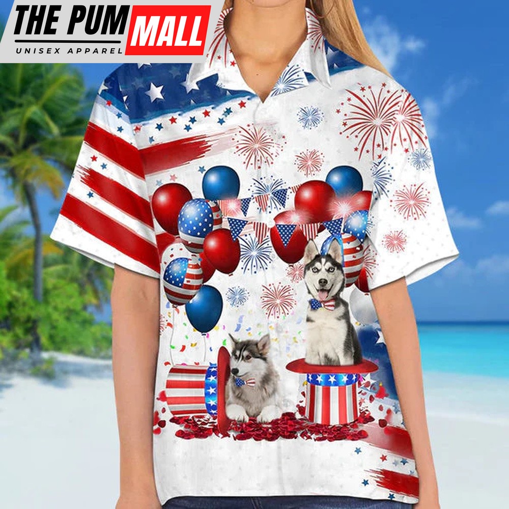 4th Of July Hawaiian Shirt, Siberian Husky Independence Day Hawaiian Shirt Hawaiian Shirt, Hawaiian Fourth Of July Shirt