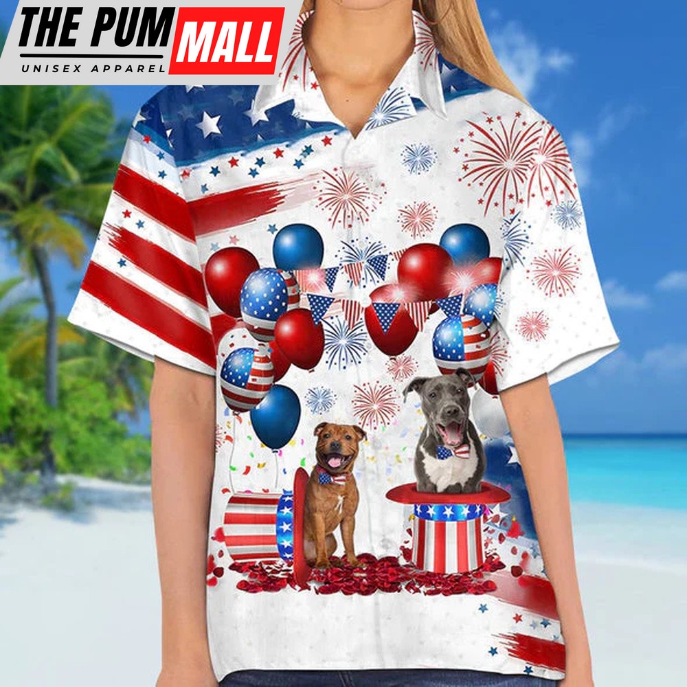 4th Of July Hawaiian Shirt, Staffordshire Bull Terrier Independence Day Hawaiian Shirt Hawaiian Shirt, Hawaiian Fourth Of July Shirt