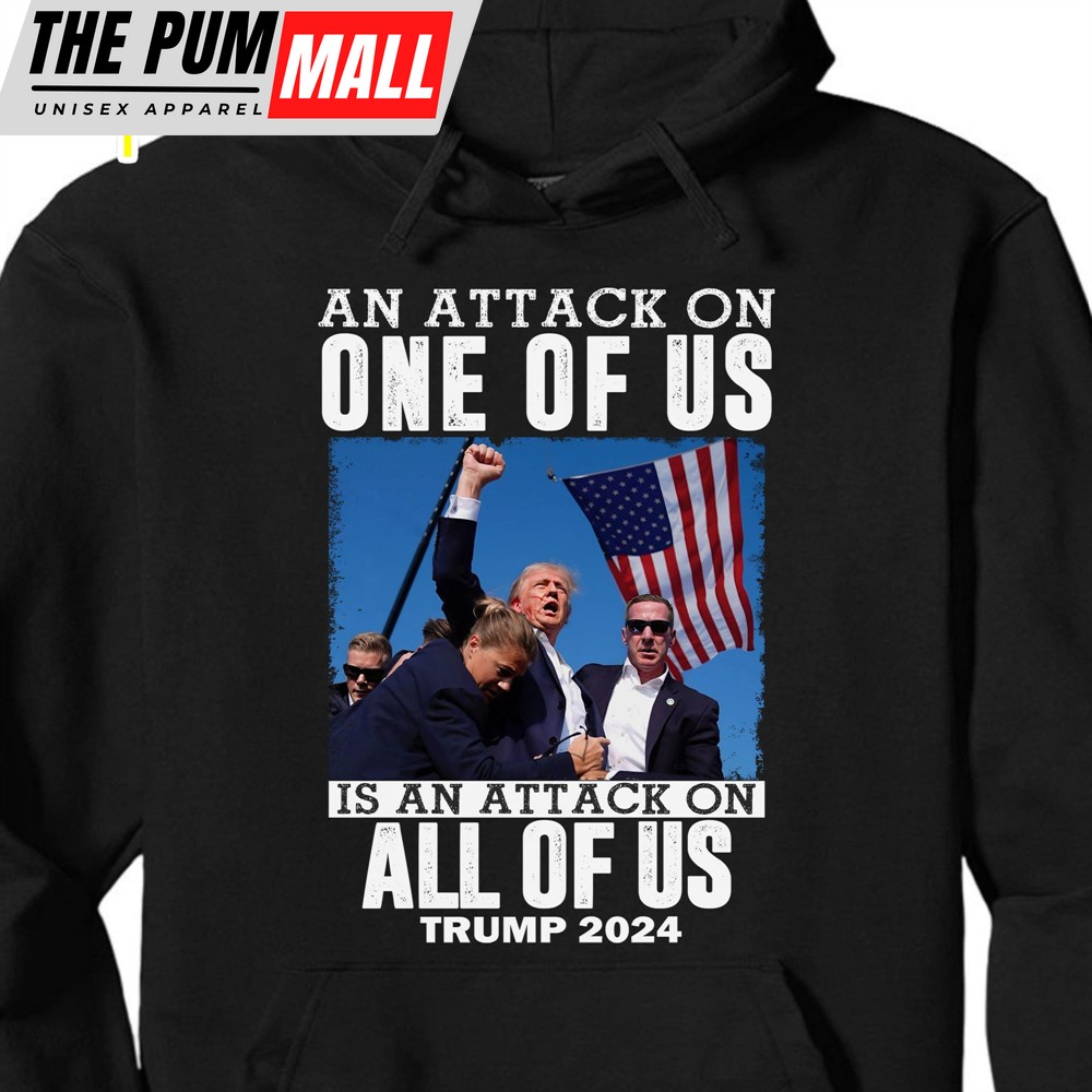An Attack On One Of Us Trump Fight 2024 Shirt Trump 2024 Pennsylvania Rally Trump Supporters Shirt Dark