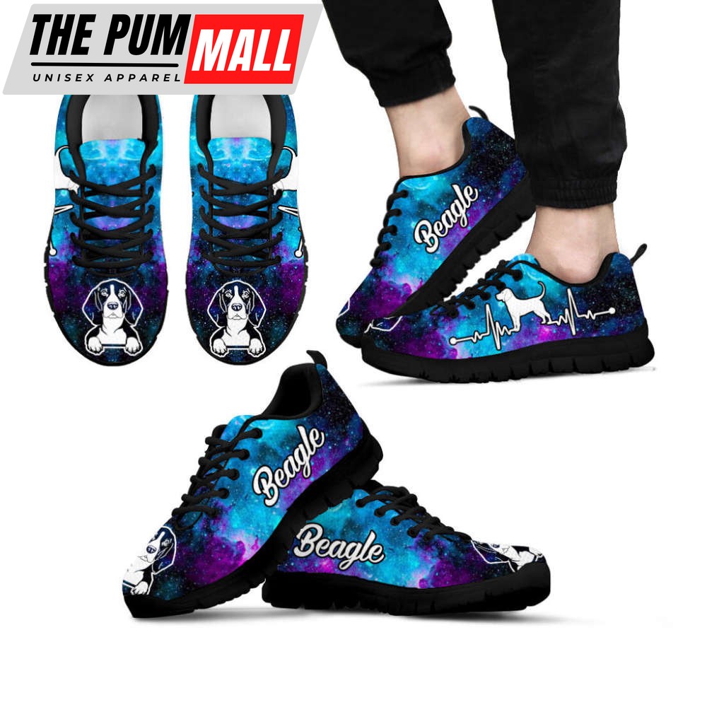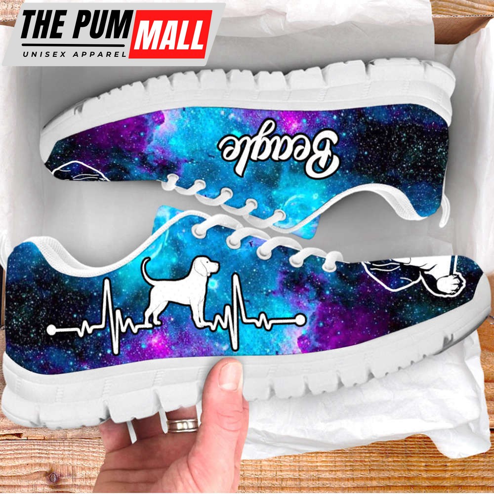 Beagle Dog Lover Shoes Galaxy Heartbeat Sneakers Walking Running Lightweight Casual Shoes For Pet Lover