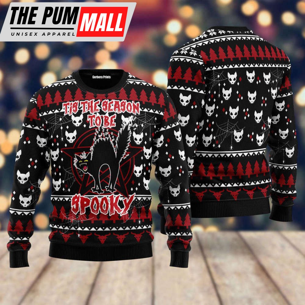 Black Cat Spooky Halloween Ugly Christmas Sweater – Gift For Chrismass