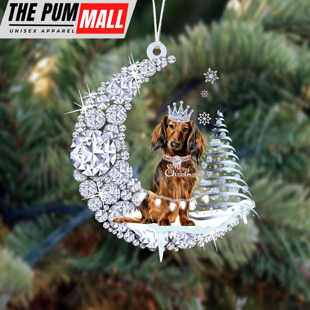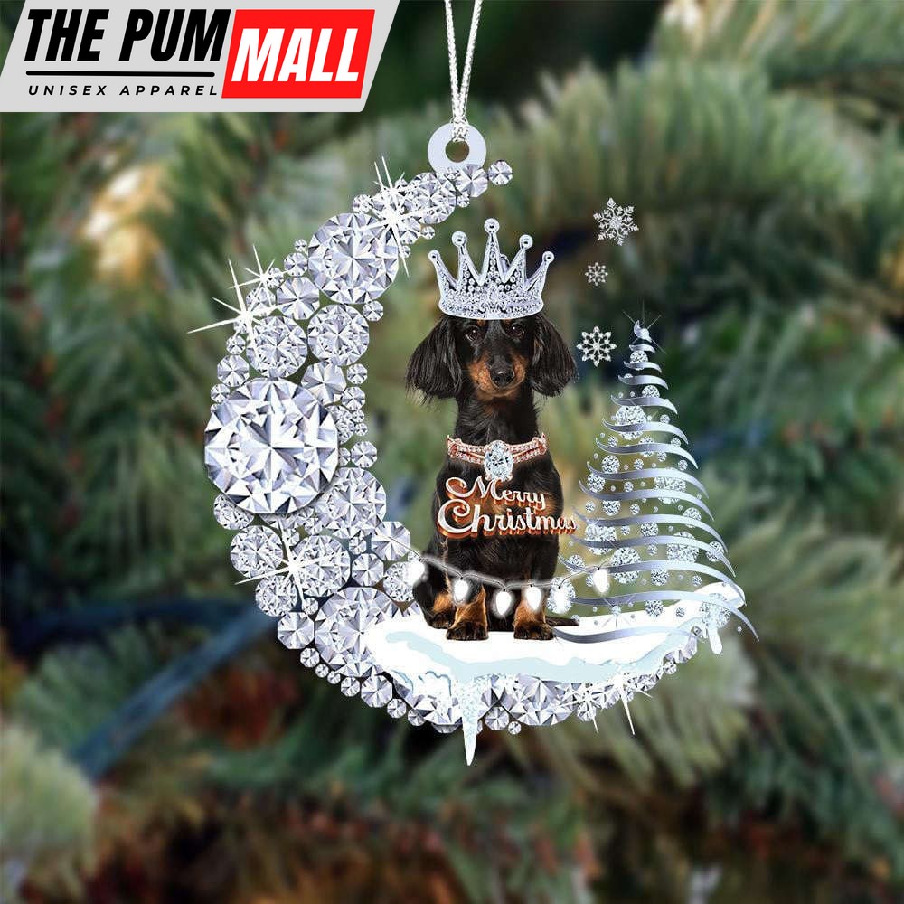 Black Dachshund Diamond Moon Merry Christmas Ornament Dog Acrylic Ornament Limited Edition. Add a warm and meaningful touch to your holiday season with a personalized Christmas tree ornament crafted uniquely for your family. Perfect for those looking for unique, custom Christmas decorations, each ornament is beautifully designed to feature names, dates, or heartfelt messages. This custom ornament is more than just decor; it’s a symbol of joyful memories, love, hope, and the promise of a bright future.