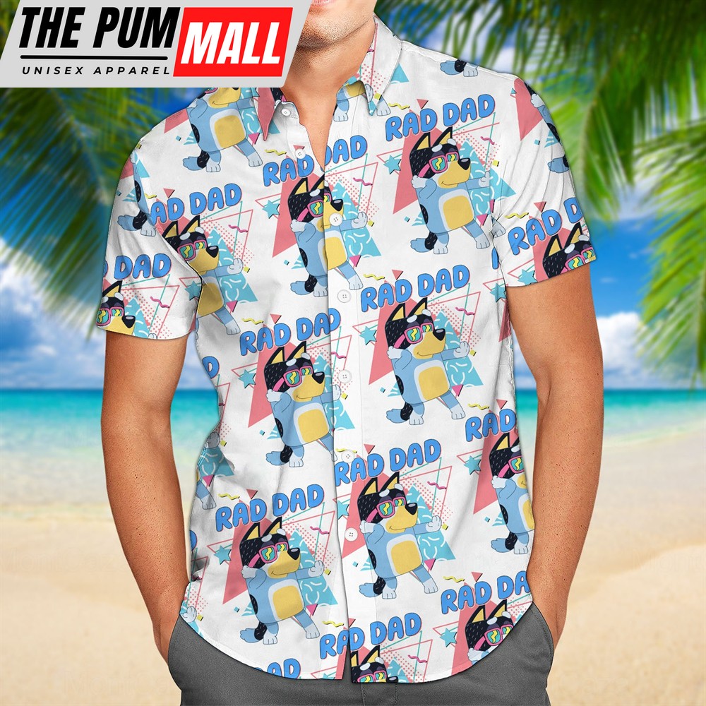 Bluey Rad Dad Hawaiian Shirt Bluey Dad Button Bluey And Bingo Fathers Day Gift