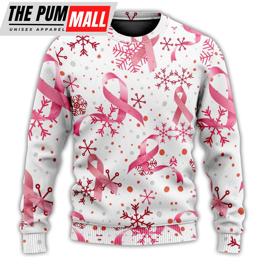 Breast Cancer Pink Ribbon Merry Christmas Sweater, Ugly Sweater For Men And Women
