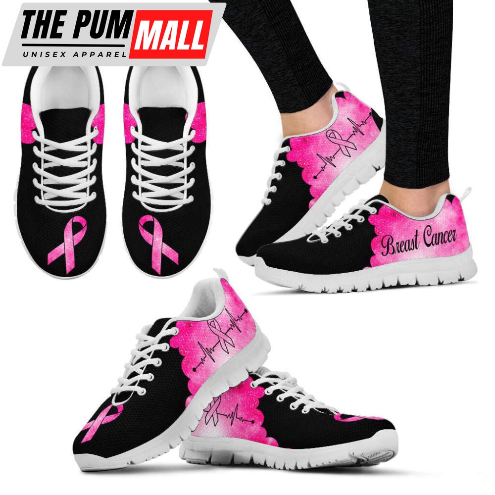 Breast Cancer Shoes Pink Black Sneaker Walking Shoes, Best Gift For Men And Women