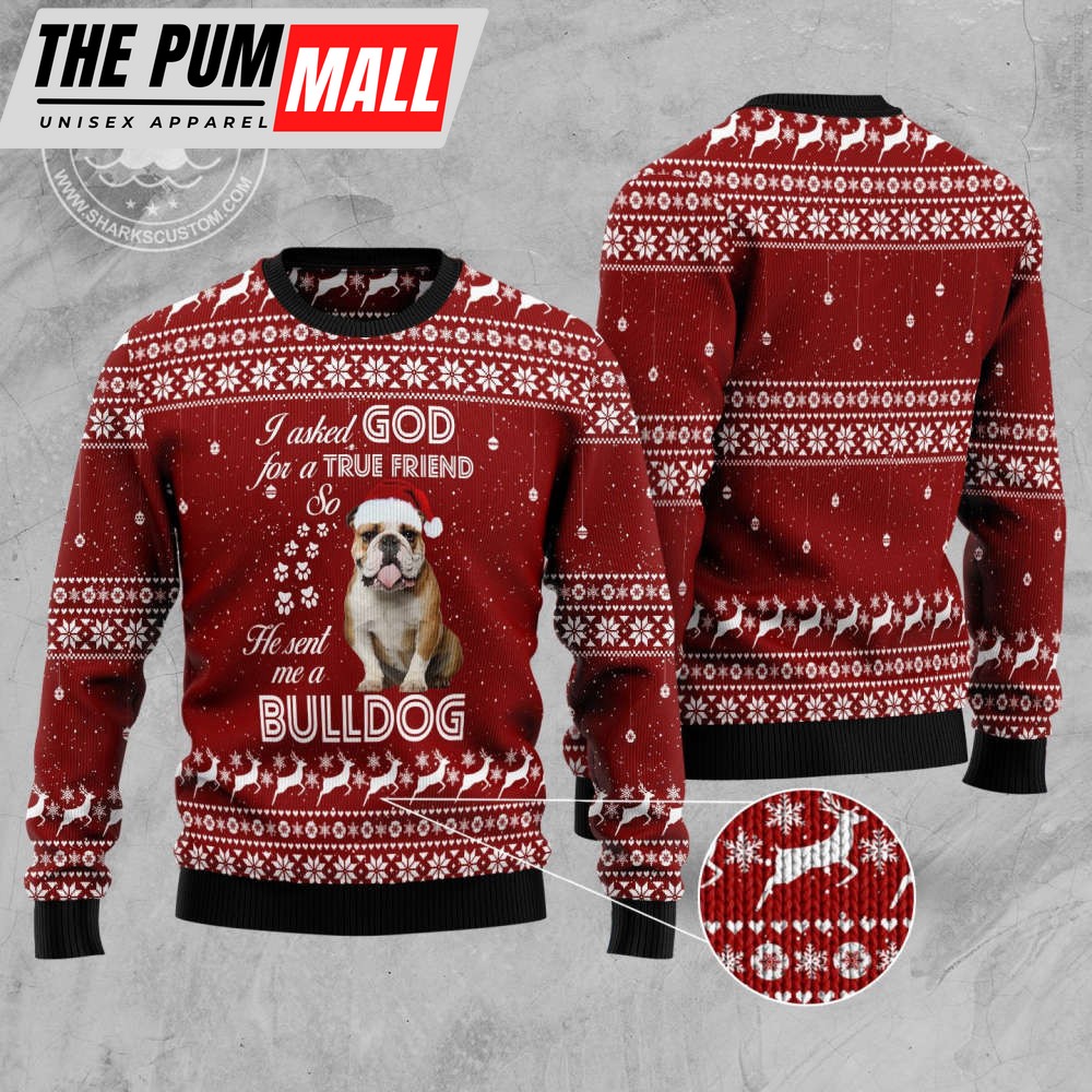 Bulldog True Friend Ugly Christmas Sweater, Gift For Christmas
