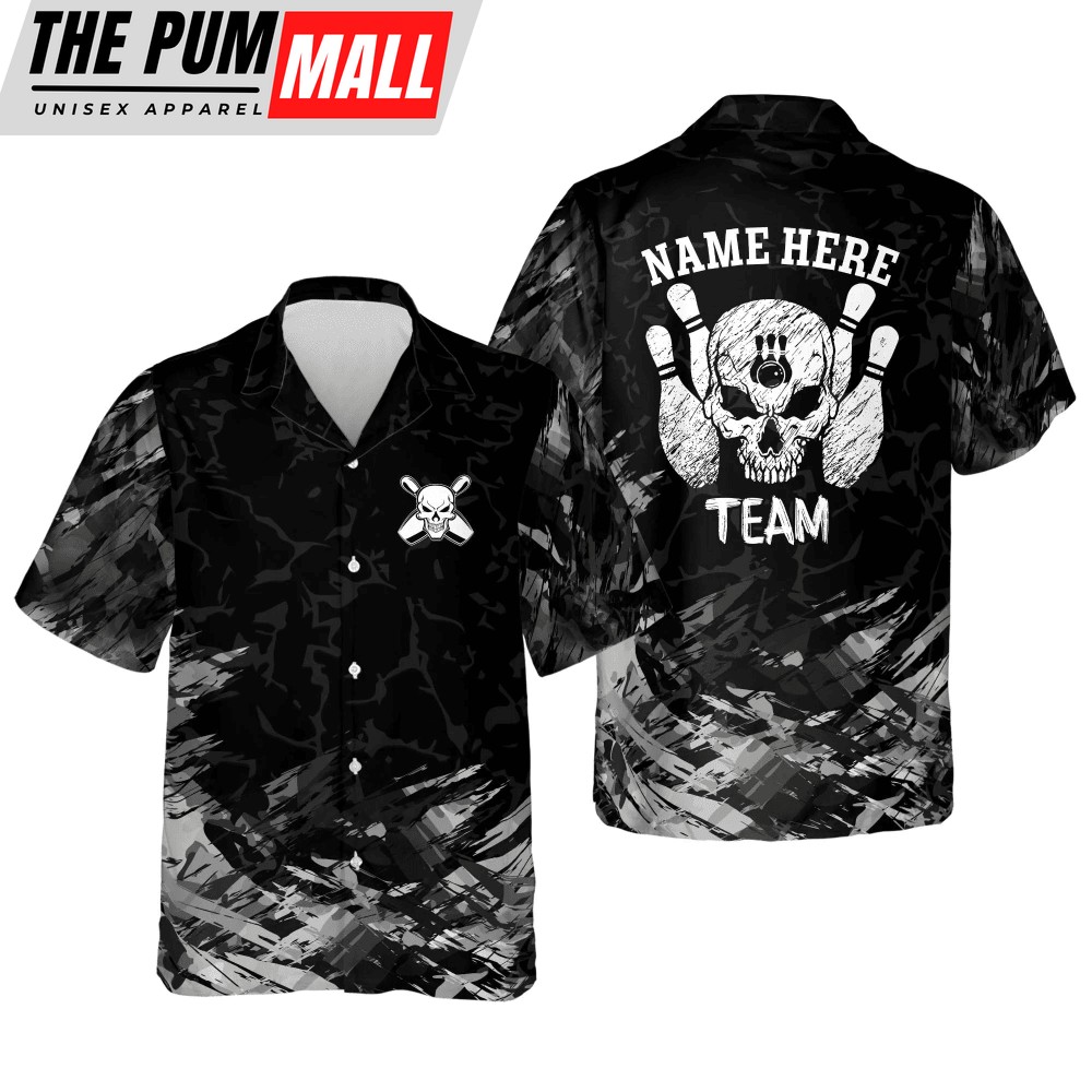 Button-Down Skull bowling Flame Hawaiian Shirt Bowling Team Shirt Bowling Gift