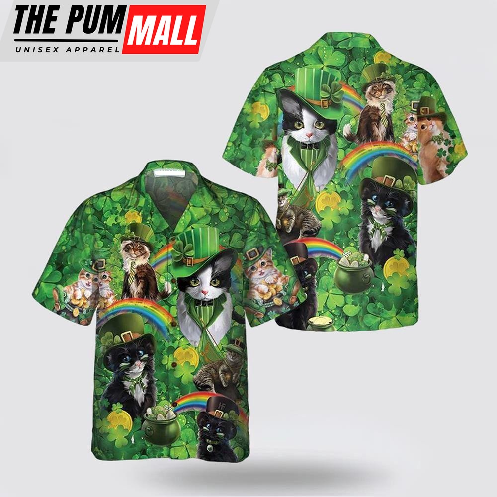 Cats Saint Patrick’s Day Hawaiian Shirt, St Patricks Day Shirts, Shamrock Hawaiian Shirt