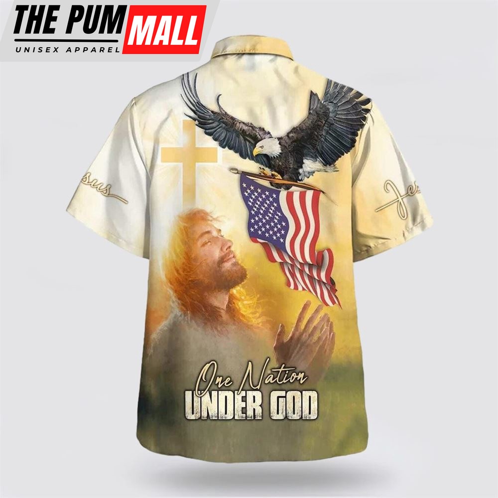 Christian Hawaiian Shirt, 4th Of July Eagle Jesus America One Nation Under God Hawaiian Shirt, Religion Hawaiian Shirt