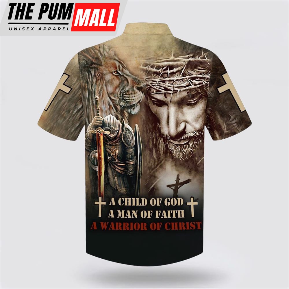 Christian Hawaiian Shirt, A Child Of God A Man Of Faith A Warrior Of Christ Hawaiian Shirt, Religion Hawaiian Shirt