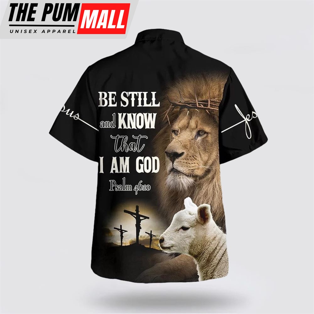 Christian Hawaiian Shirt, Be Still And Know That I Am God Hawaiian Shirt, The Lion And The Lamb Hawaiian Shirts For Men, Religion Hawaiian Shirt