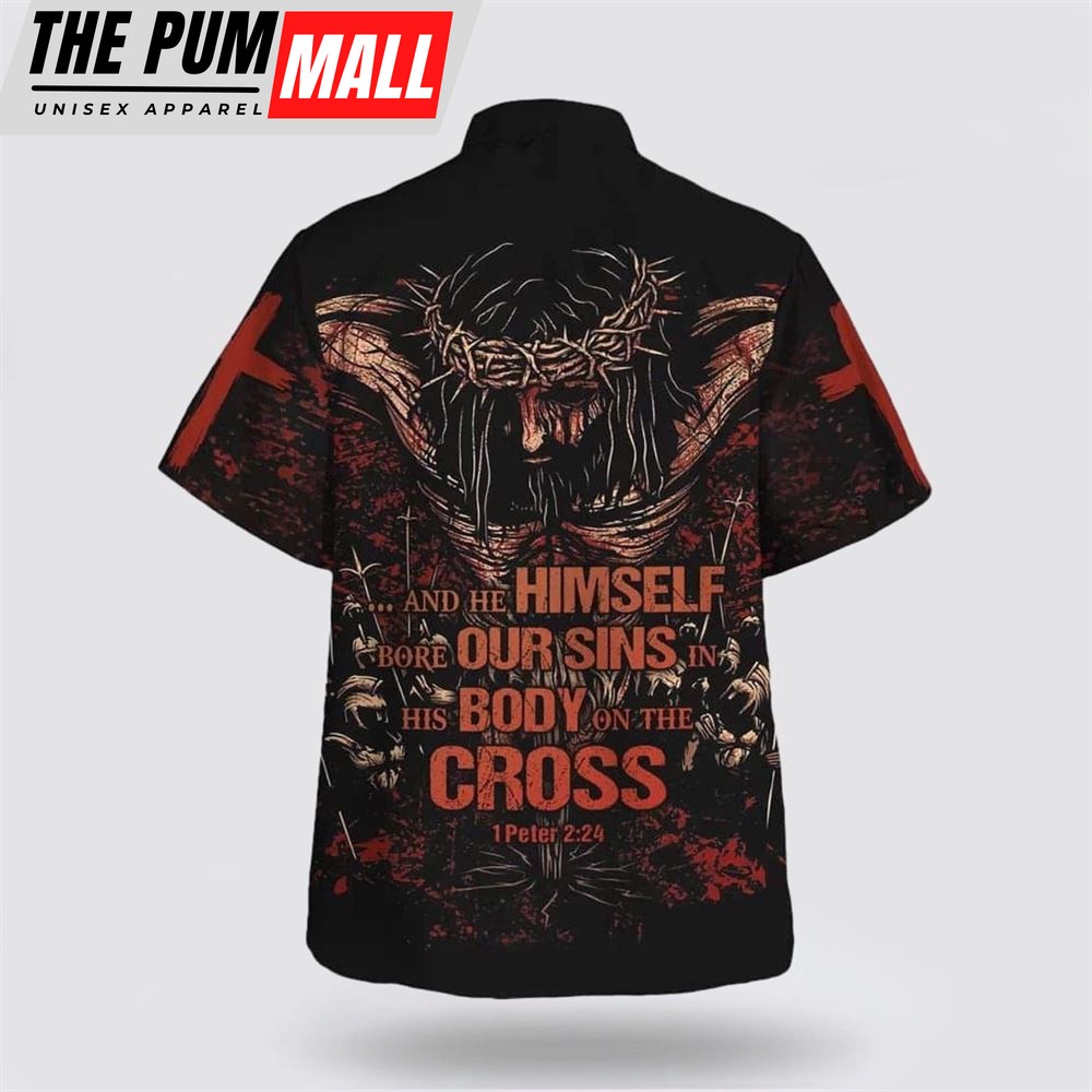 Christian Hawaiian Shirt, Bible Verse 1 Peter 224 Himself Bore Our Sins In His Body On The Cross Hawaiian Shirt, Religion Hawaiian Shirt