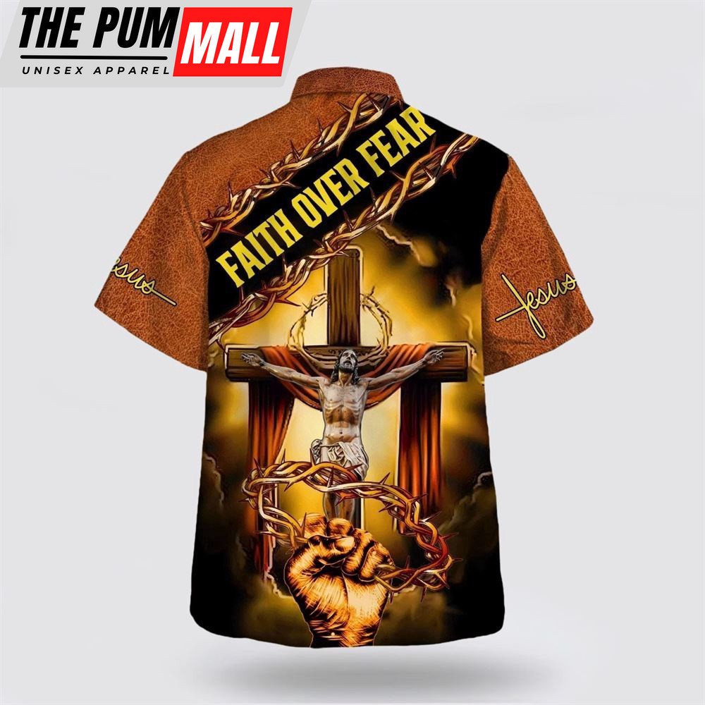 Christian Hawaiian Shirt, Crucifixion Of Jesus Faith Over Fear Hawaiian Shirt, Religion Hawaiian Shirt