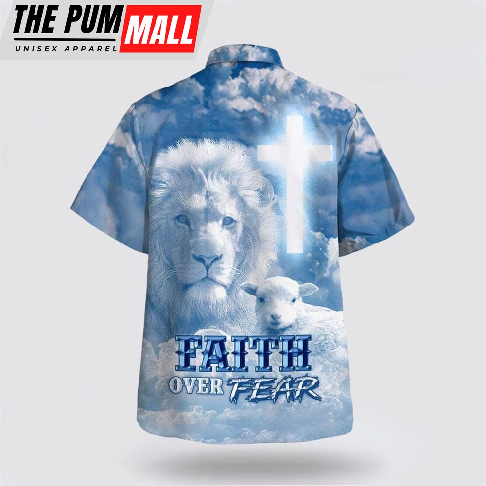 Christian Hawaiian Shirt, Faith Over Fear Bible Verse Jesus Lion Lamb Hawaiian Shirt, Religion Hawaiian Shirt