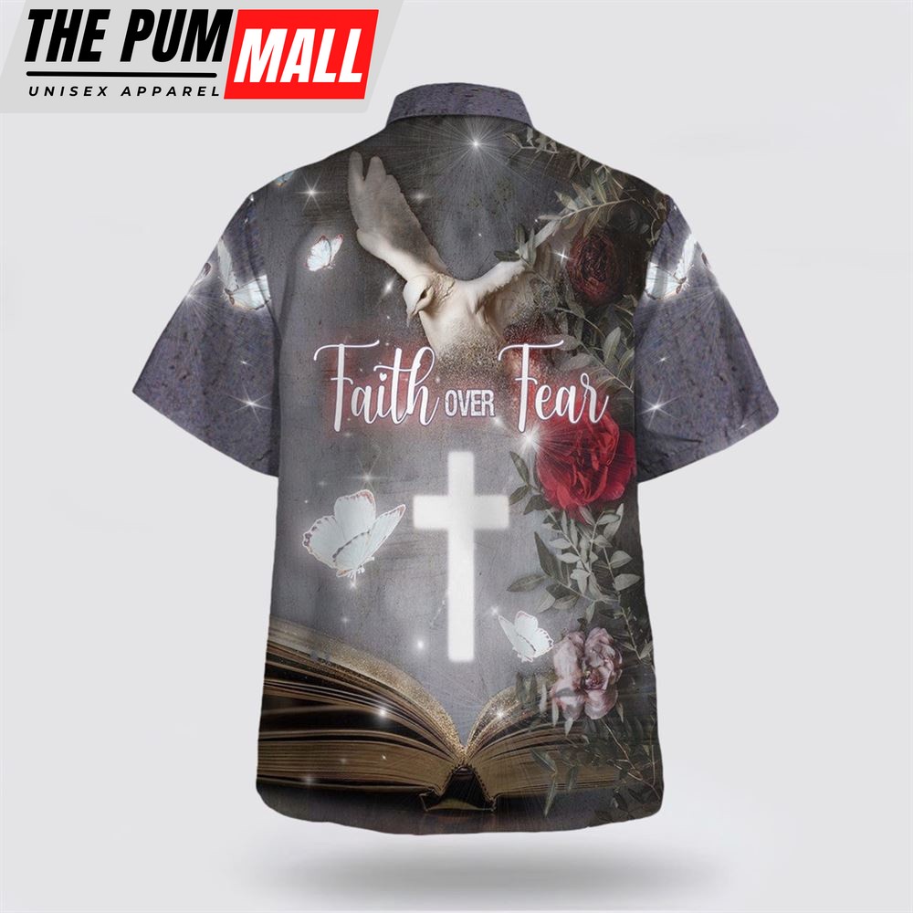 Christian Hawaiian Shirt, Faith Over Fear Cross Dove Hawaiian Shirt, Religion Hawaiian Shirt