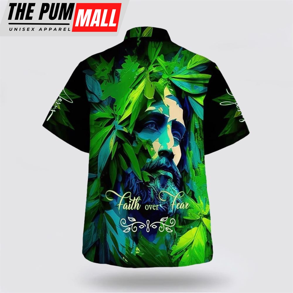 Christian Hawaiian Shirt, Faith Over Fear Green Jesus Hawaiian Shirt, Religion Hawaiian Shirt