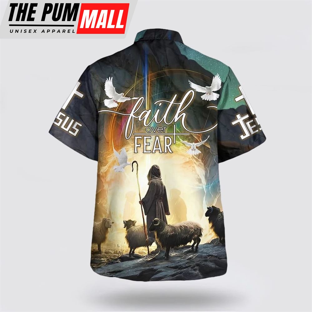 Christian Hawaiian Shirt, Faith Over Fear Hawaiian Shirt, Jesus And The Sheep Hawaiian Shirt, Religion Hawaiian Shirt