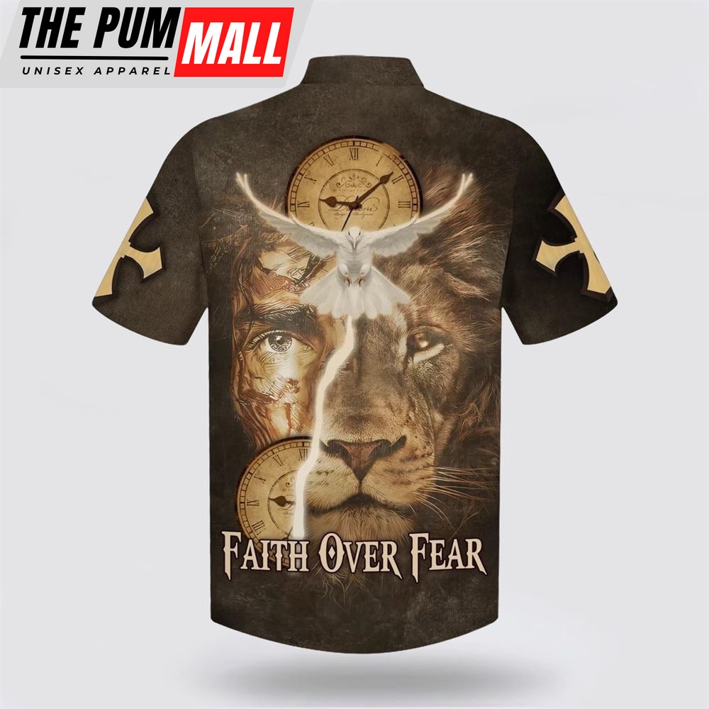Christian Hawaiian Shirt, Faith Over Fear Hawaiian Shirt, Jesus Lion And Dove Hawaiian Shirt, Religion Hawaiian Shirt