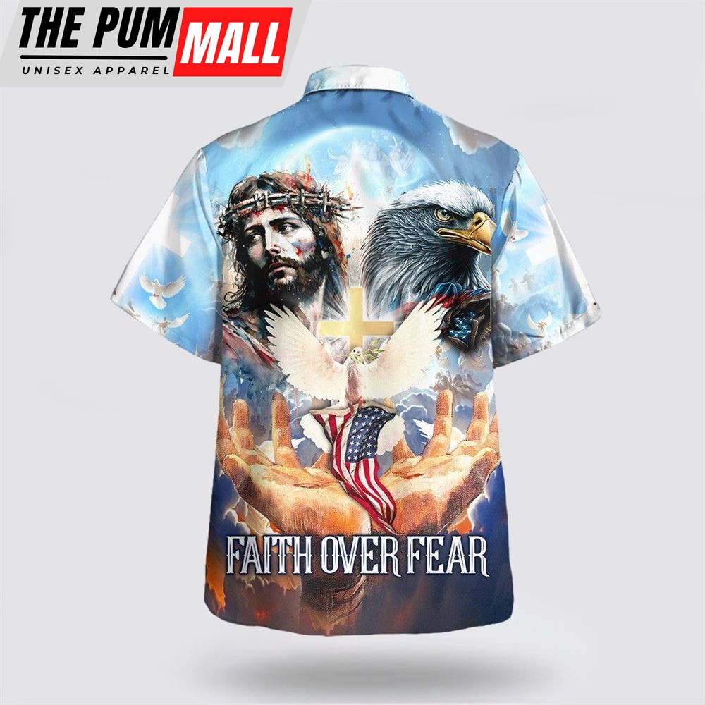 Christian Hawaiian Shirt, Faith Over Fear Jesus Face Eagle Hawaiian Shirt, Religion Hawaiian Shirt