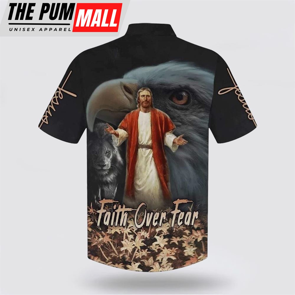 Christian Hawaiian Shirt, Faith Over Fear Jesus Lion Eagle Hawaiian Shirt, Religion Hawaiian Shirt