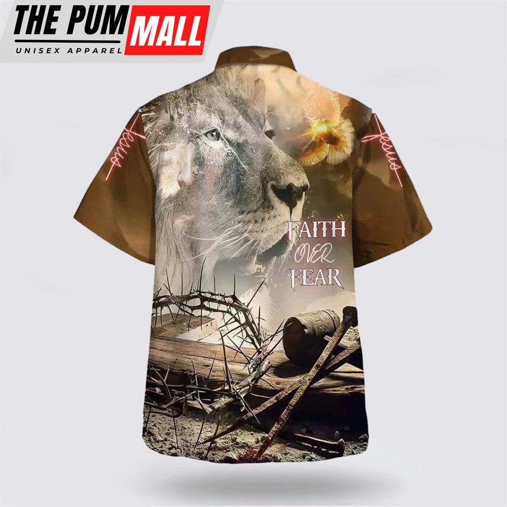 Christian Hawaiian Shirt, Faith Over Fear Lion And Crown Of Thorns Christian Hawaiian Shirt, Religion Hawaiian Shirt