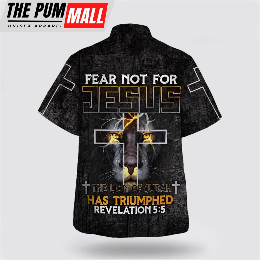 Christian Hawaiian Shirt, Fear Not For Jesus The Lion Of Judah Has Triumphed Revelation Cross Hawaiian Shirt