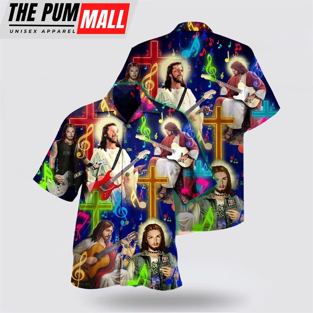 Christian Hawaiian Shirt, Guitar Jesus Love Guitar Hawaiian Shirt, Religion Hawaiian Shirt