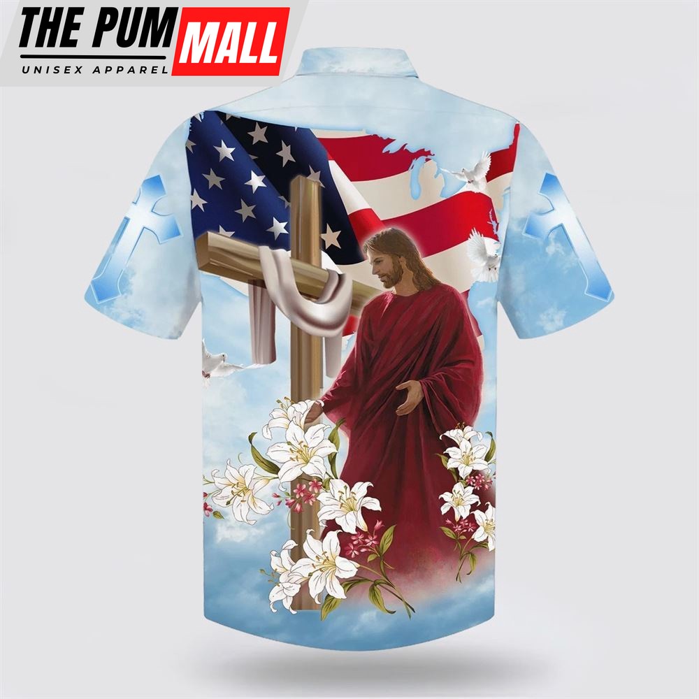 Christian Hawaiian Shirt, He Is Risen Jesus Cross With Lilies Hawaiian Shirt, Religion Hawaiian Shirt