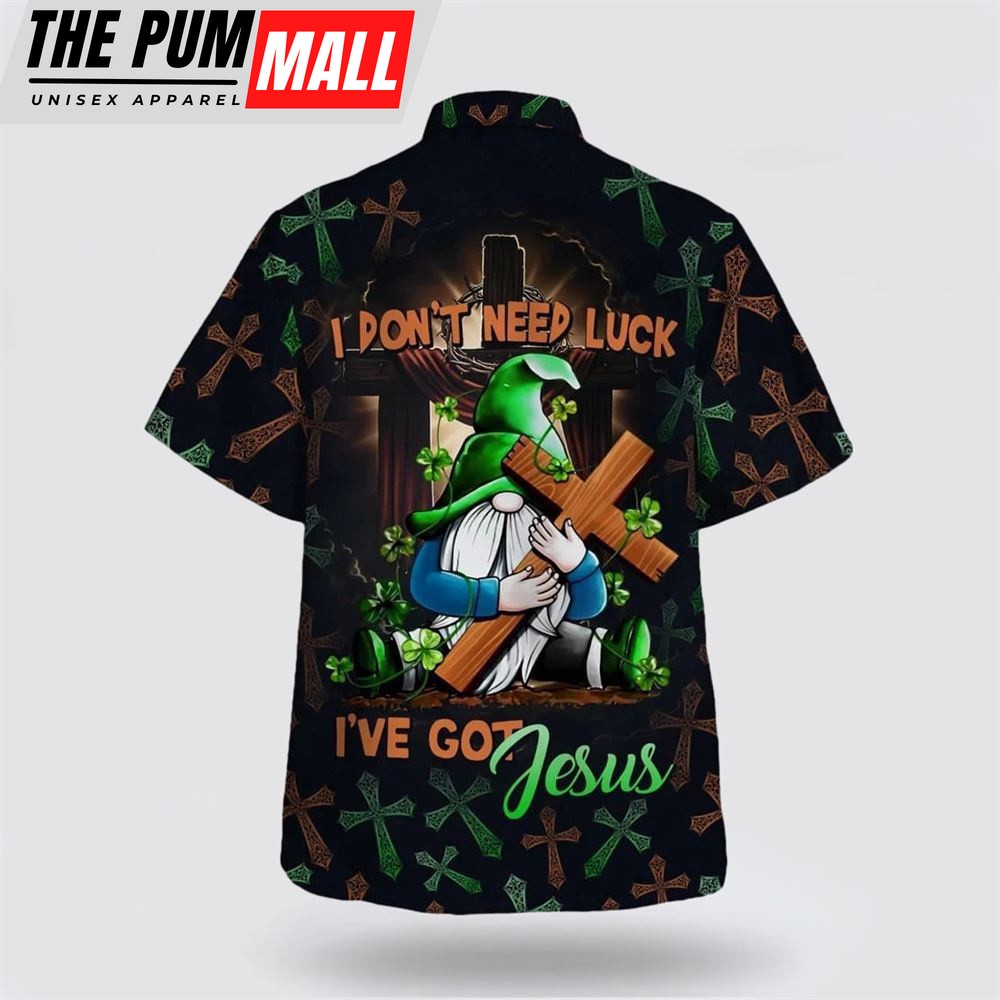 Christian Hawaiian Shirt, I Don’t Need Luck I’ve Got Jesus Gnome Patrick Day Hawaiian Shirt, Religion Hawaiian Shirt