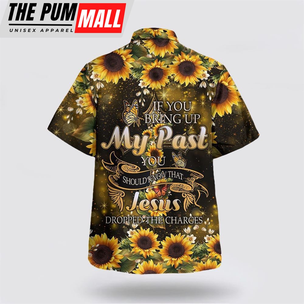 Christian Hawaiian Shirt, If You Bring Up My Past You Should Know That Jesus Dropped The Charges Sunflower Hawaiian Shirt