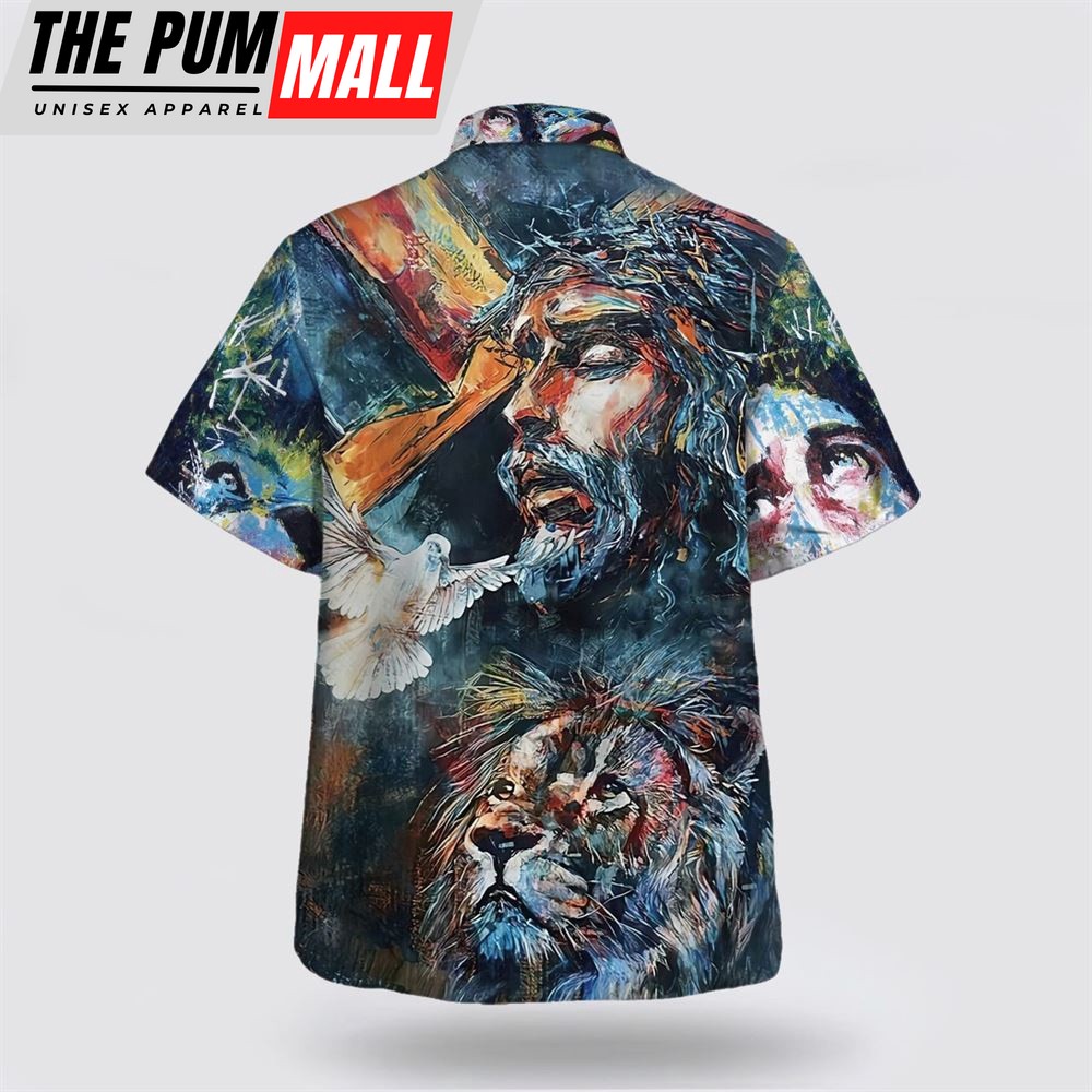 Christian Hawaiian Shirt, Jesus Christ Lion And Dove Hawaiian Shirts For Men, Religion Hawaiian Shirt