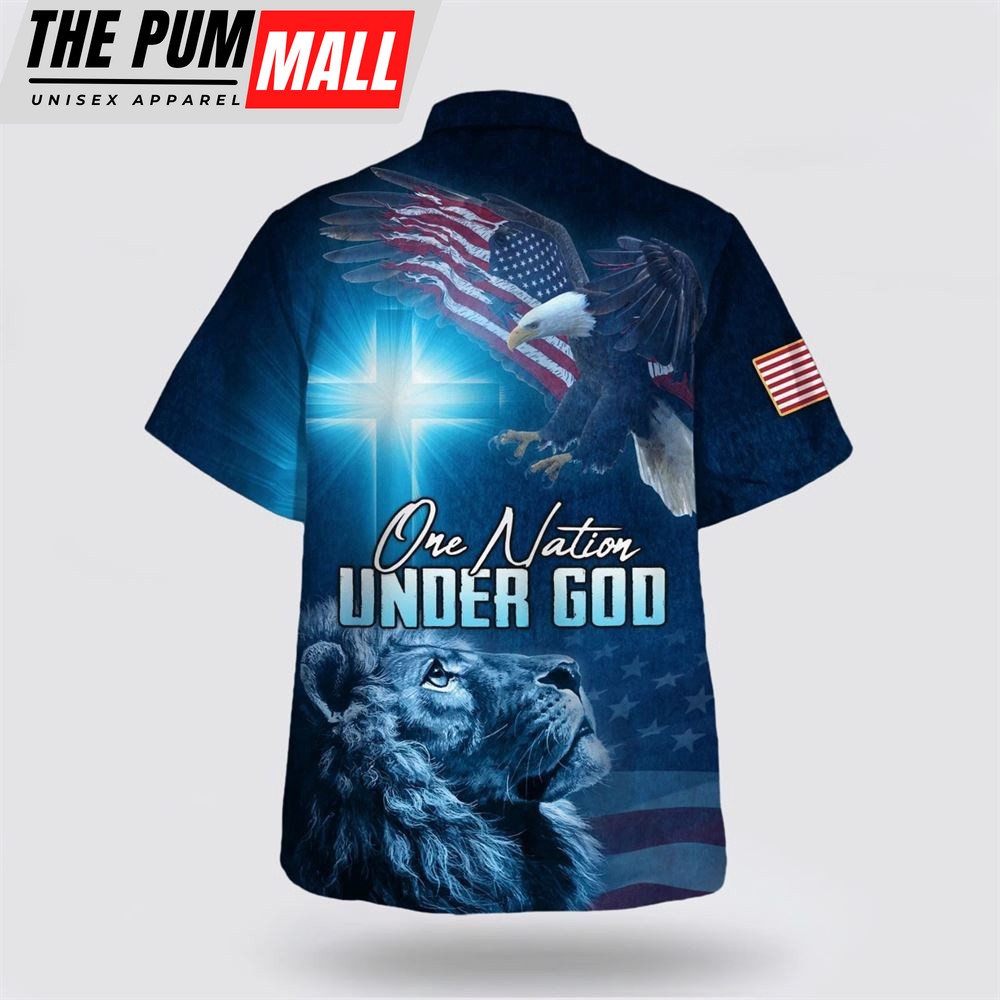 Christian Hawaiian Shirt, Jesus Christ Lion Eagle One Nation Under God American Hawaiian Shirt, Religion Hawaiian Shirt
