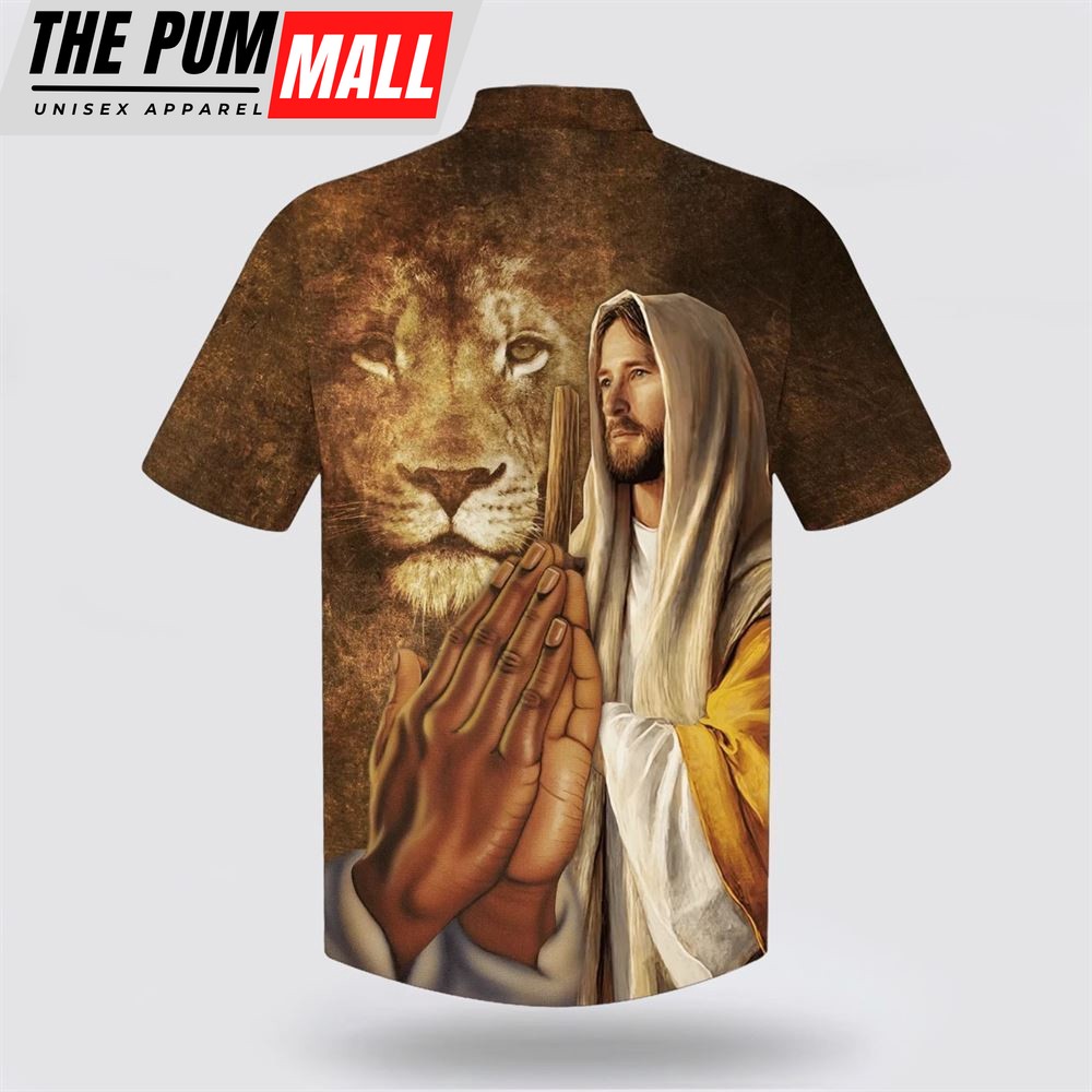 Christian Hawaiian Shirt, Jesus Christ Prayer Lion Hawaiian Shirt, Religion Hawaiian Shirt