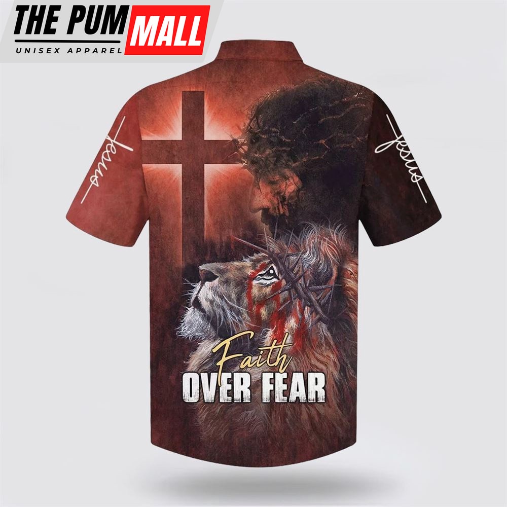 Christian Hawaiian Shirt, Jesus Faith Over Fear Lion Cross Hawaiian Shirt, Christian Clothing Hawaii