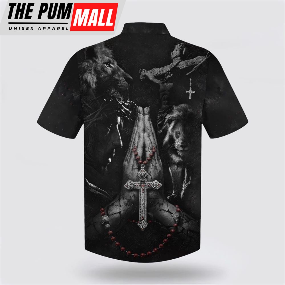 Christian Hawaiian Shirt, Jesus Hands Praying Lion Hawaiian Shirts, Christian Clothing Hawaii