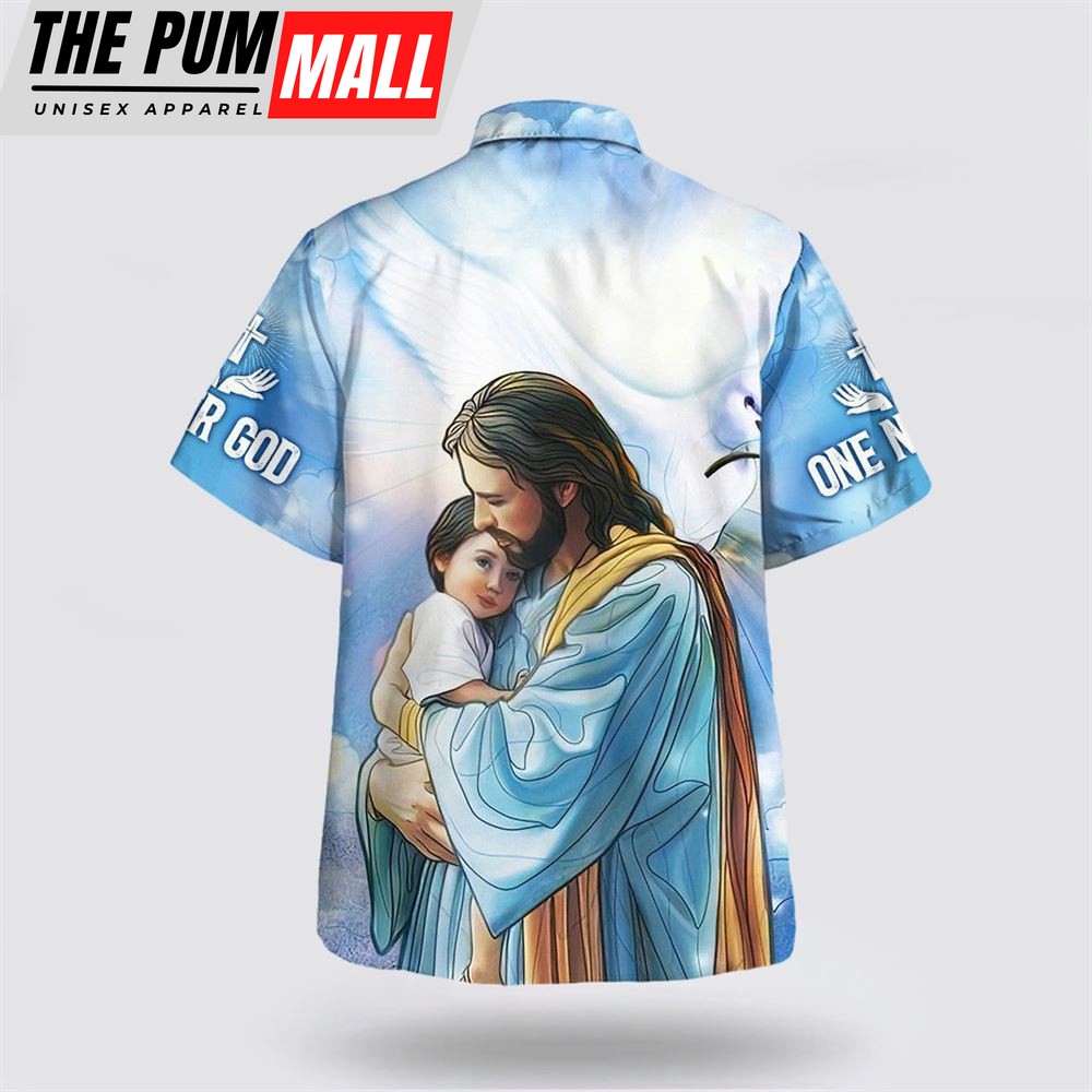 Christian Hawaiian Shirt, Jesus Hugging Child Hawaiian Shirt, One Nation Under God Hawaiian Shirts, Christian Clothing Hawaii