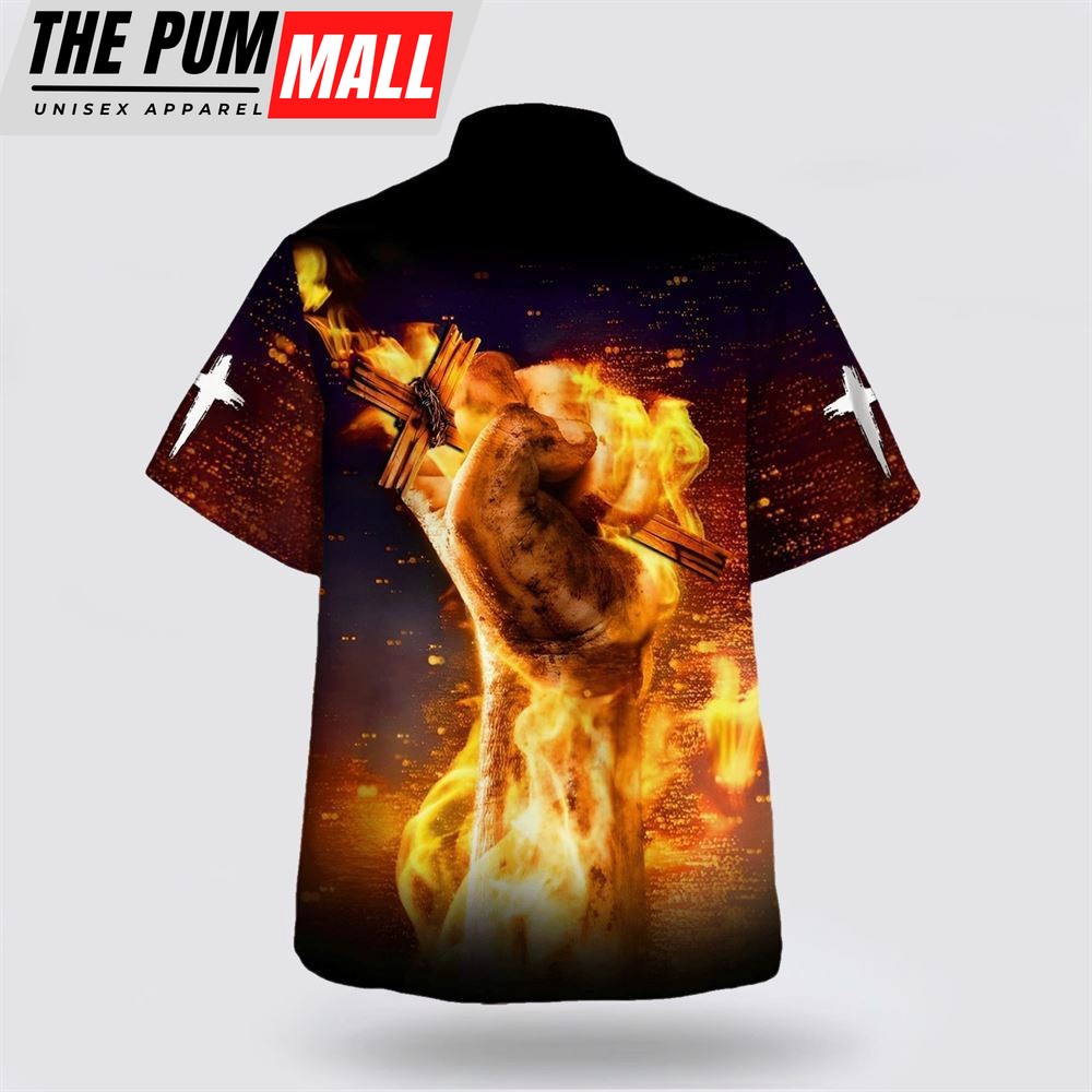 Christian Hawaiian Shirt, Jesus Is My Power Hand Holding Fire Hawaiian Shirt, Christian Clothing Hawaii