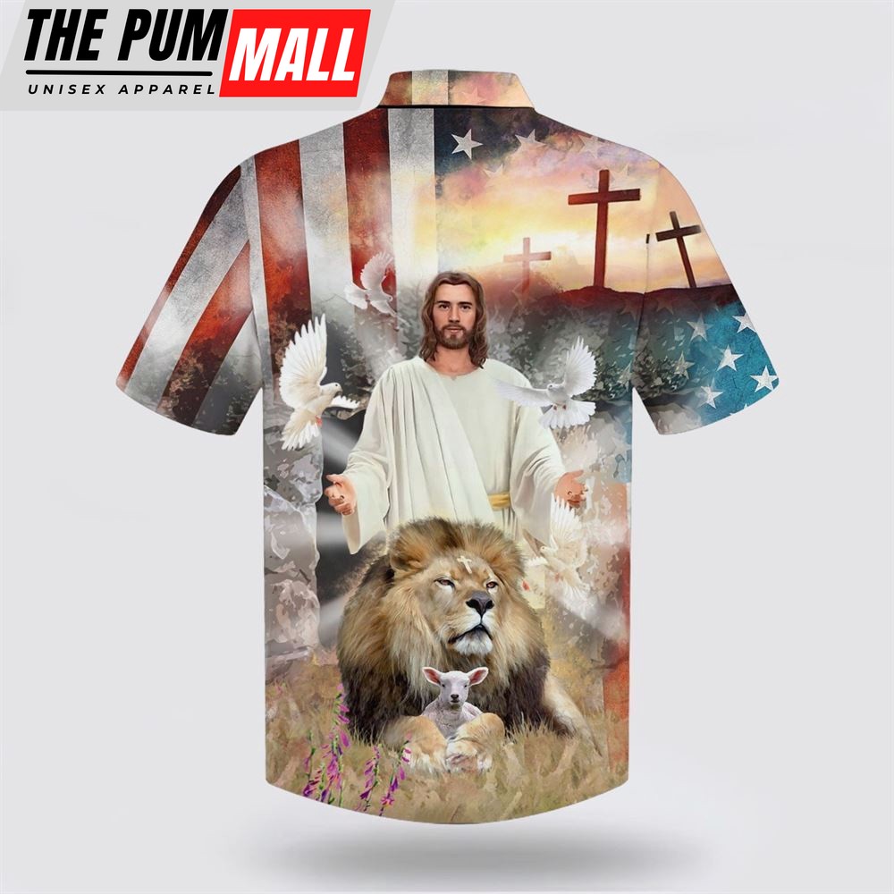Christian Hawaiian Shirt, Jesus Lion And The Lamb Cross Hawaiian Shirts, Christian Clothing Hawaii