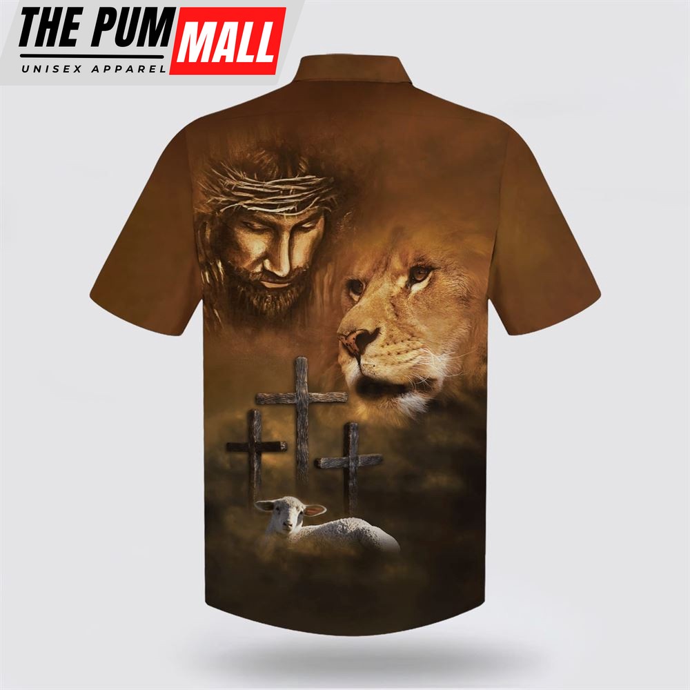 Christian Hawaiian Shirt, Jesus Lion And The Lamb Three Cross Hawaiian Shirts, Christian Clothing Hawaii