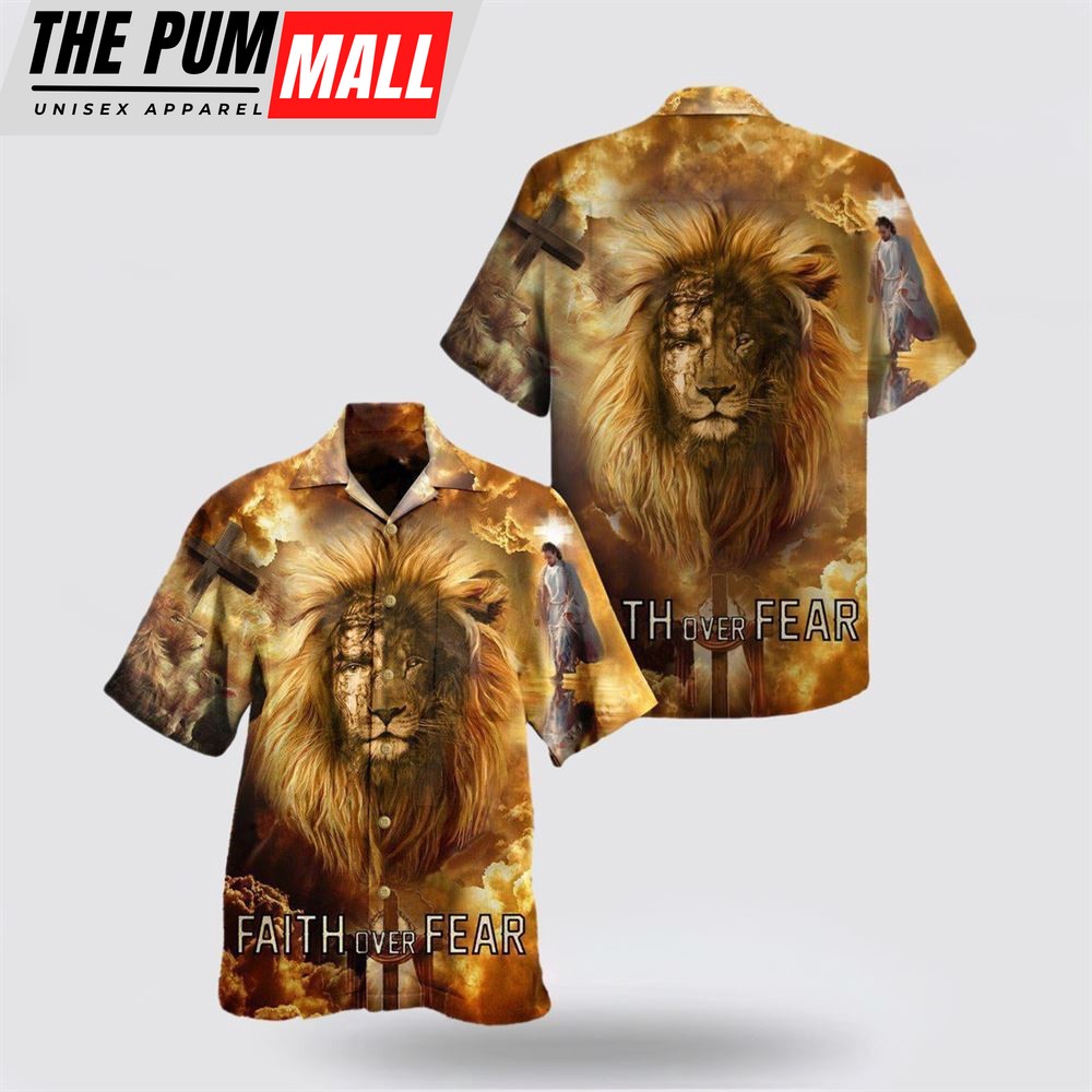 Christian Hawaiian Shirt, Jesus Lion Faith Over Fear Psalms Hawaiian Shirts, Christian Clothing Hawaii