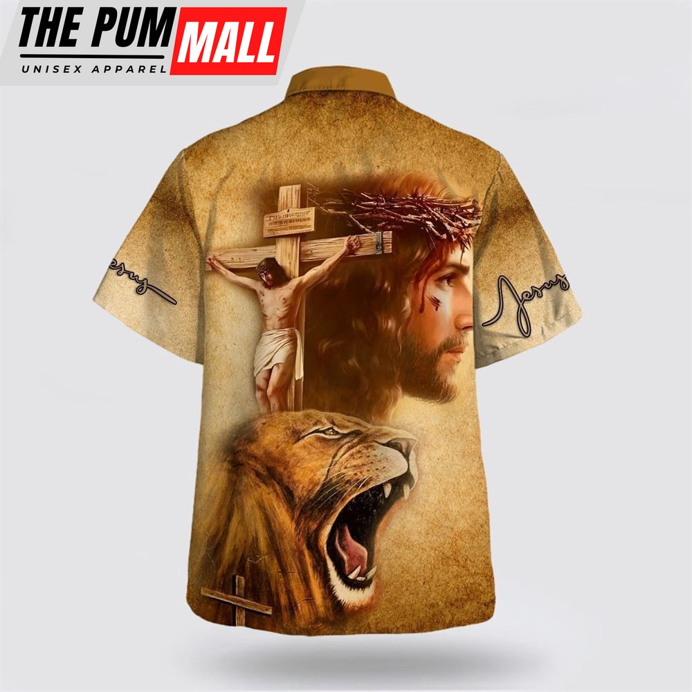 Christian Hawaiian Shirt, Jesus On The Cross Lion Of Judah Hawaiian Shirt, Christian Clothing Hawaii