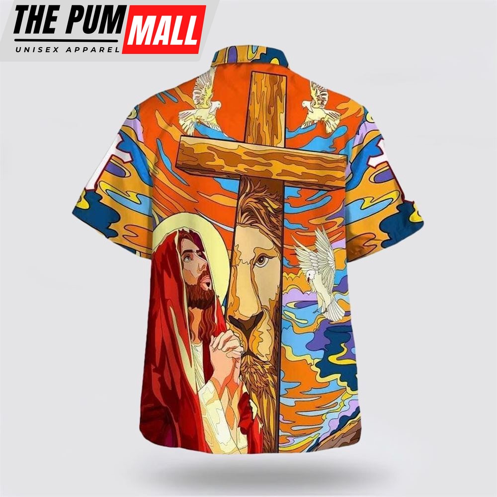 Christian Hawaiian Shirt, Jesus Prayer Lion Cross Dove Christian, Christian Clothing Hawaii